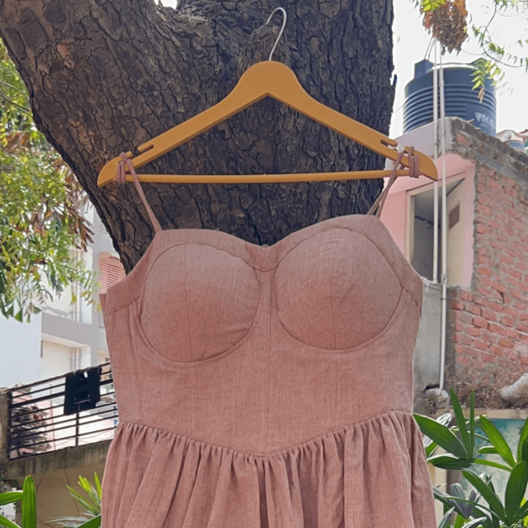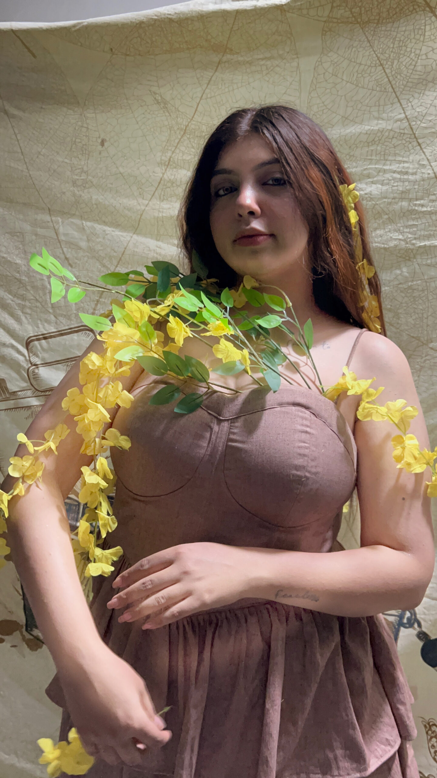 Step into timeless style with our RUFFLED LATTE DRESS — Discover the artistry of our Ruffled Latte Dress, presented in the soft hues of Latte Brown. This exquisite piece features handwoven Khadi cotton, celebrated for its breathable texture and unique character. The design blends a corset-inspired bodice for subtle shaping with cascading tiered ruffles that create graceful movement. Its relaxed fit ensures all-day comfort, making it an ideal choice for warmer climates.